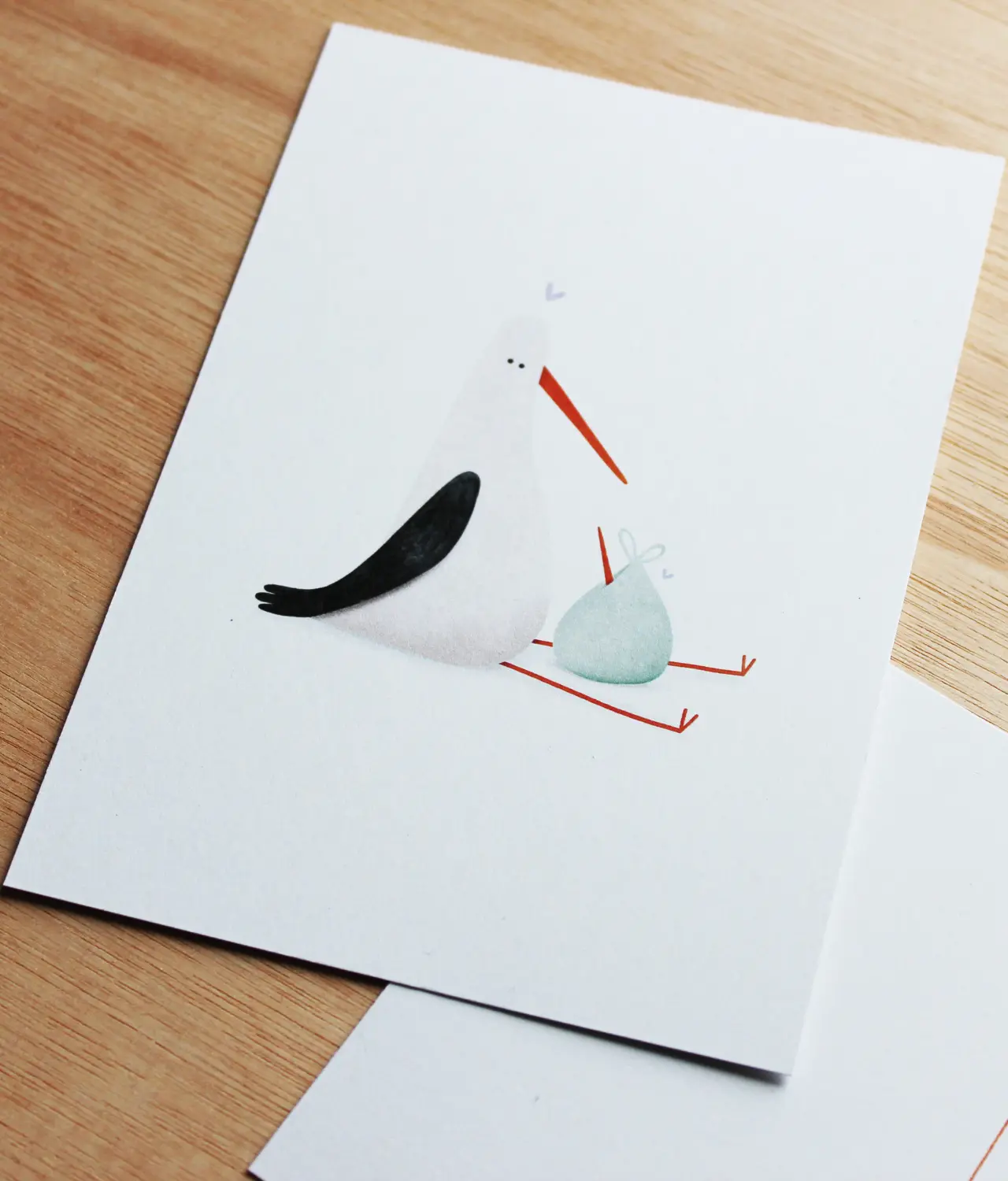 - Geboortekaartje Blije Ooievaar is uniek in zijn soort doordat het met de hand geïllustreerd is.