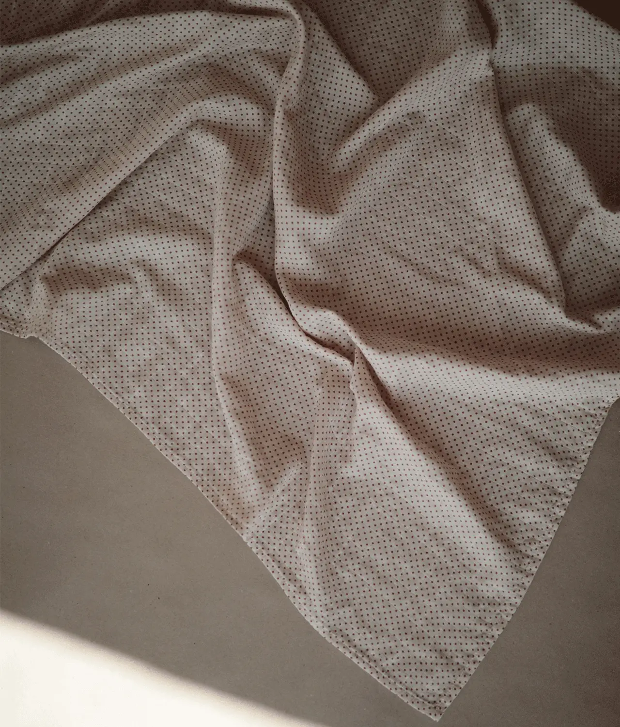De crèmekleurige swaddle met fijne stippen blijft lekker zacht na elke wasbeurt, is ademend, neemt veel vocht op en is gemaakt van 100% biologisch katoen.
