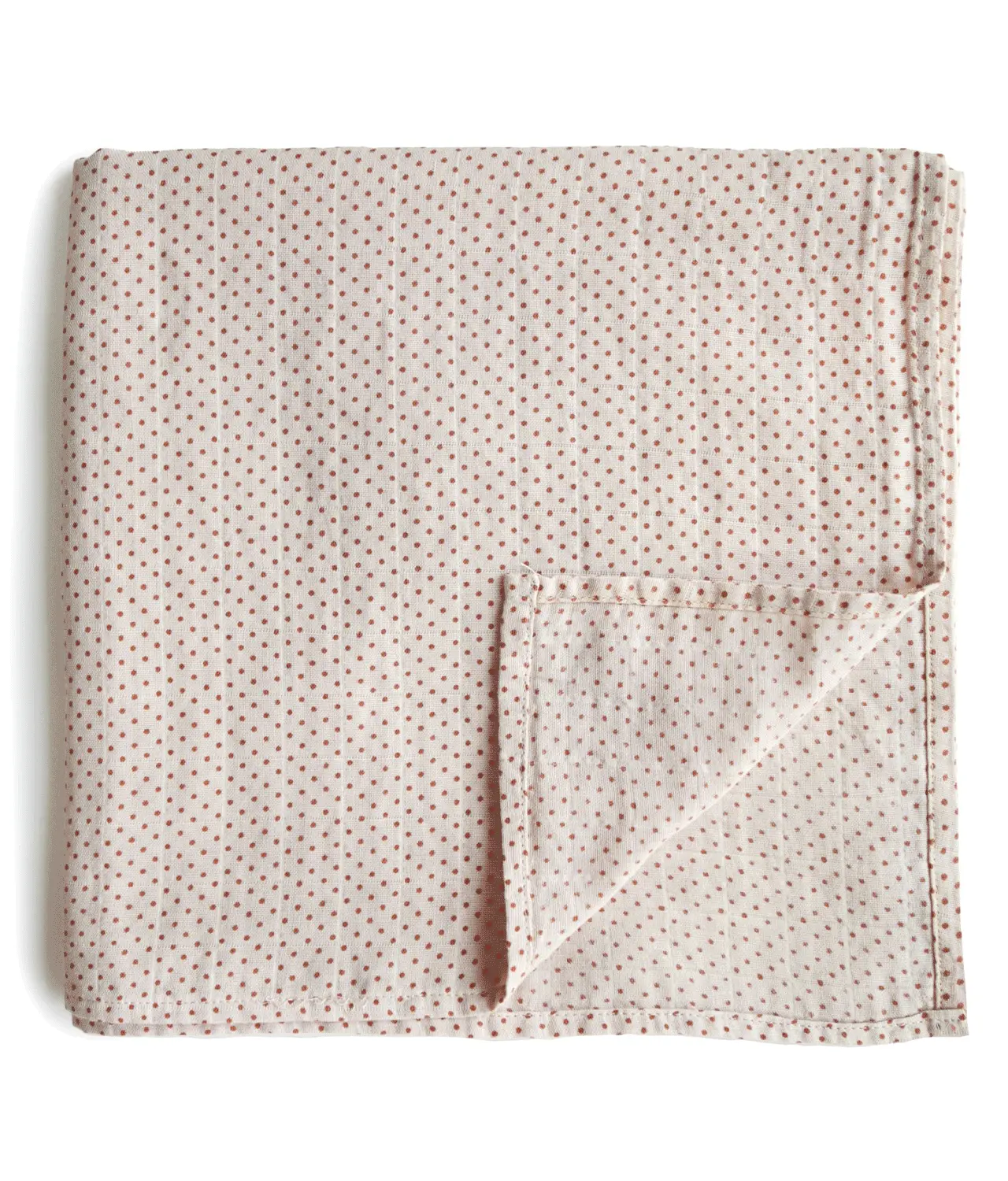 Mushie – Hydrofiele doek XL – 120x120cm – 100% Biologisch katoen – Caramel Polka Dots