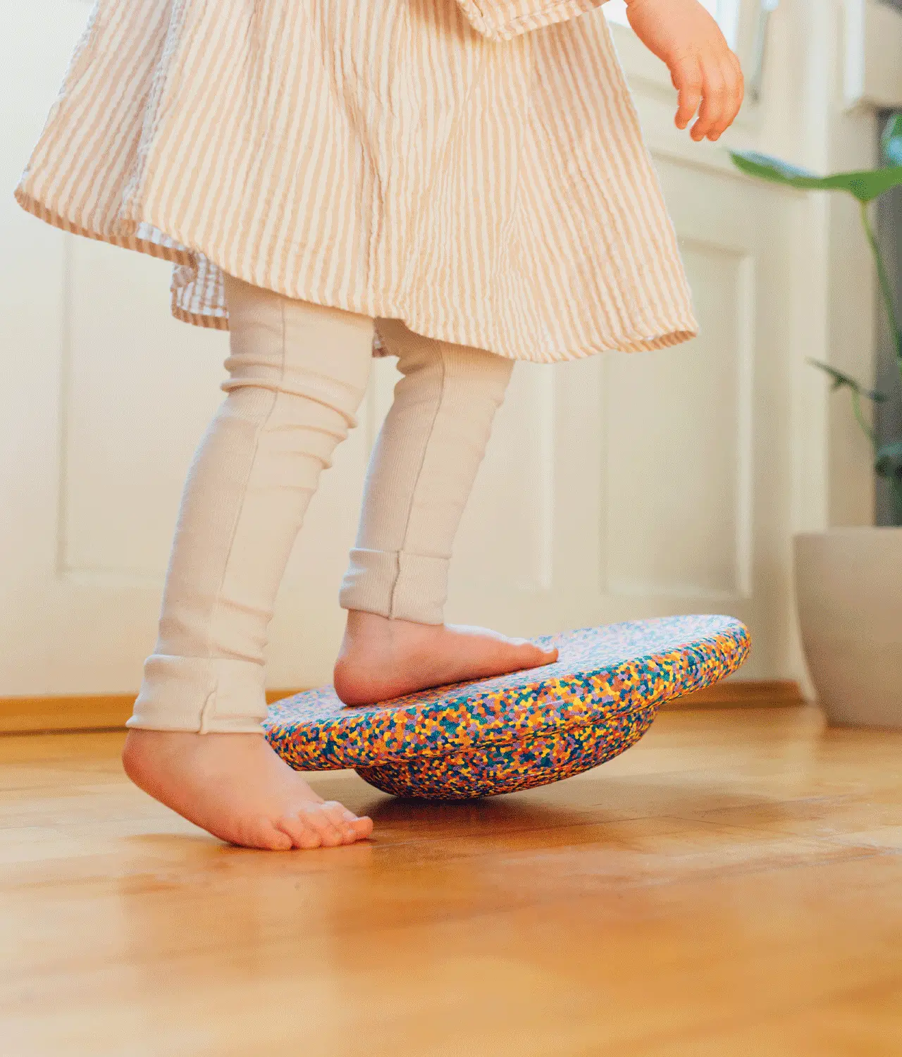 Het Stapelstein balansbord confetti is ideaal voor speelse balans oefeningen, om op te staan, te wiebelen of zitten, samen of alleen. Dit open ended speelgoed zorgt voor veel speelplezier en stimuleert de motoriek vanaf 1 jaar.